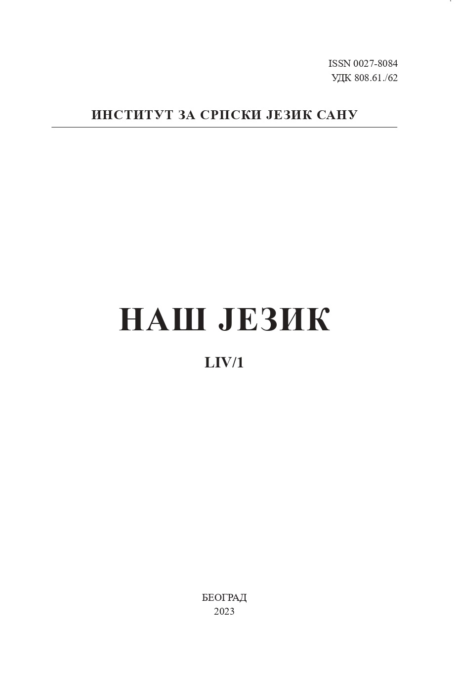 Насловна Наш језик Наш језик LIV/1