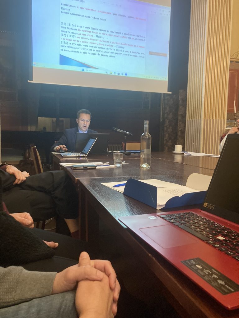 На међународном научном скупу у Прагу („Praha – Záhřeb – Skopje a zpět“), организованом поводом 80 година од рођења проф. др Зденке Рибарове, председника Црквенословенске лексикографске комисије при Међународном комитету слависта, учествовао је проф. др Виктор Савић, руководилац Старословенистичког одсека Института и члан Комисије, 18. новембра 2025 године, с темом „Средњовјековна лексика у Паштровском препису Душанова законика (AHAZU, III a 28)“.